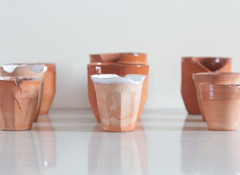 In een intensief proces wordt de klei gewonnen, gezeefd, gegoten en gebakken om tot kleine herinneringen van onze grond te worden.