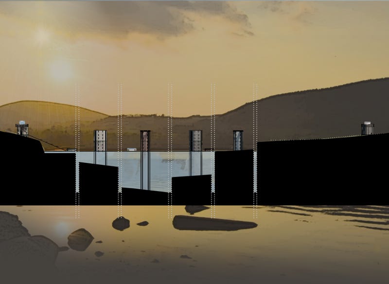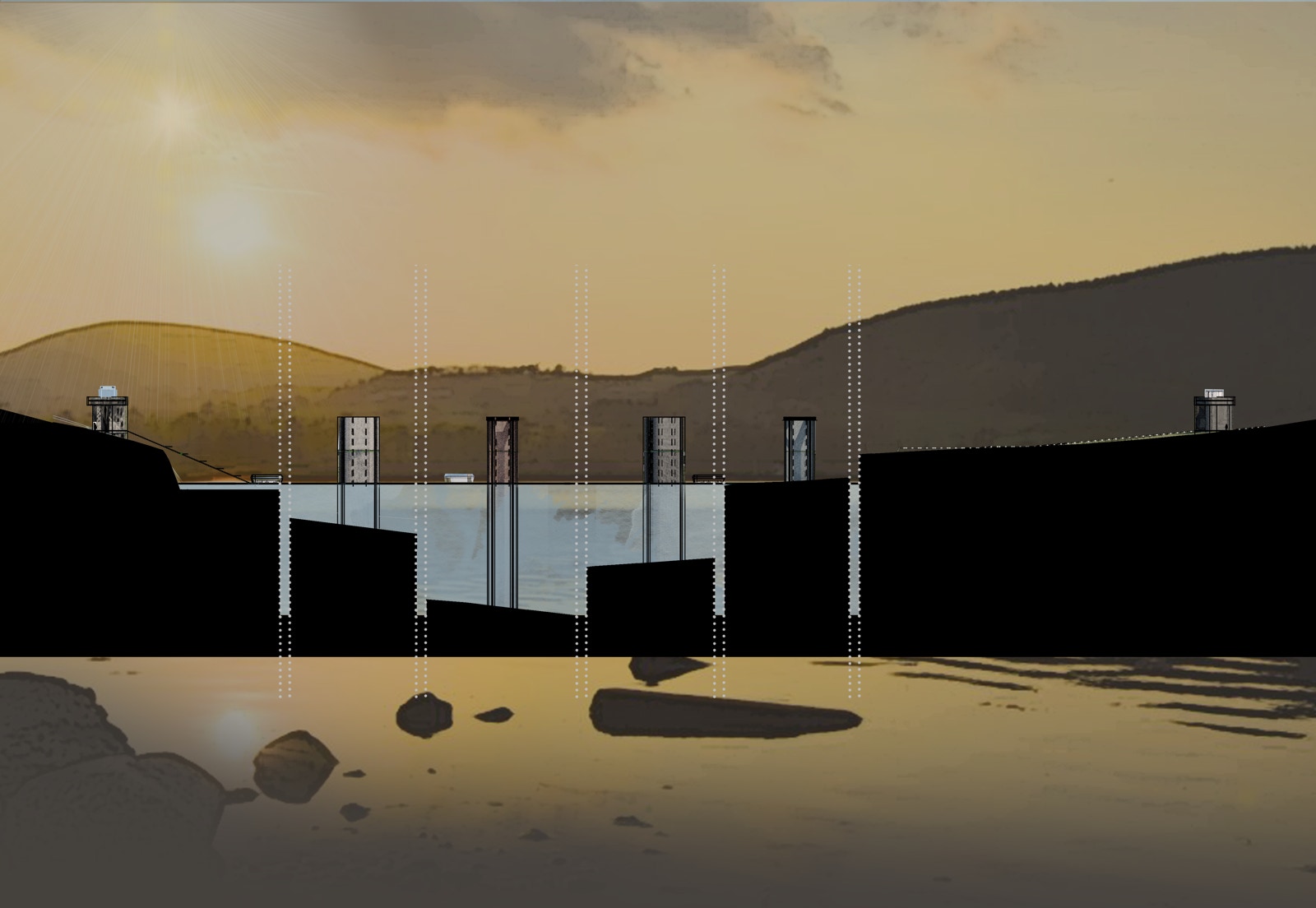 De torens hebben op verschillende hoogtes plateaus waardoor afhankelijk van de hoogte van het water, de toren van binnenuit anders ervaren wordt. Er is afhankelijk van het weer, direct of indirect contact met het omliggende water wat de toerist bewust maakt van het water en de klimaatverandering.
