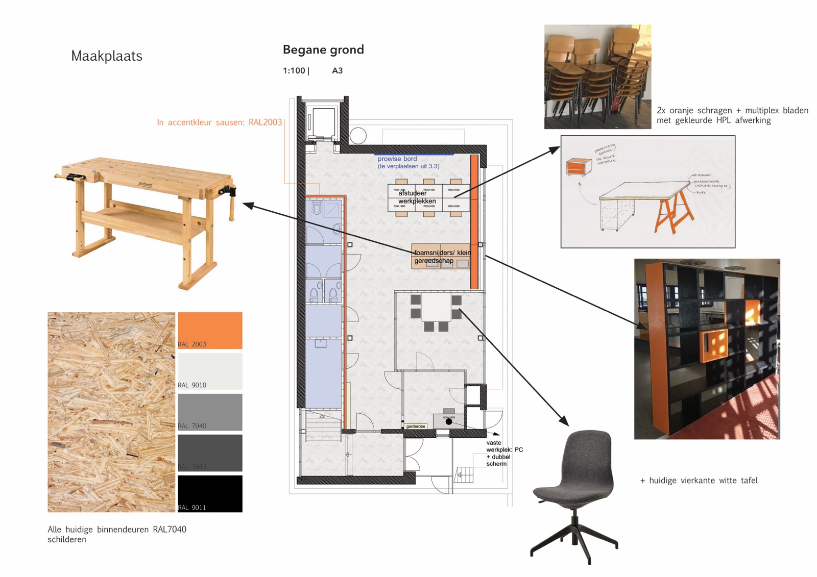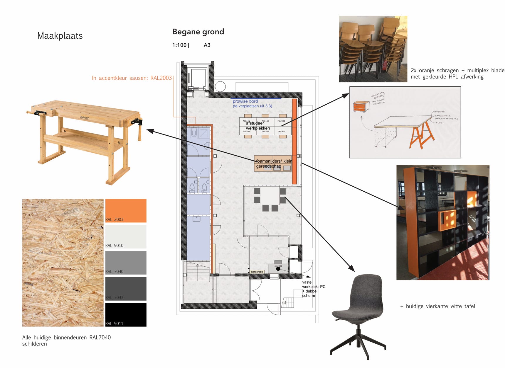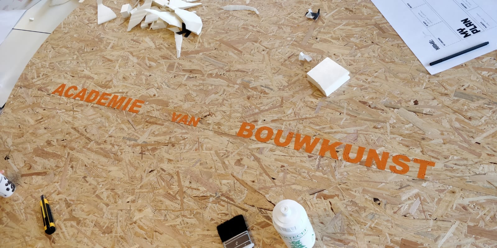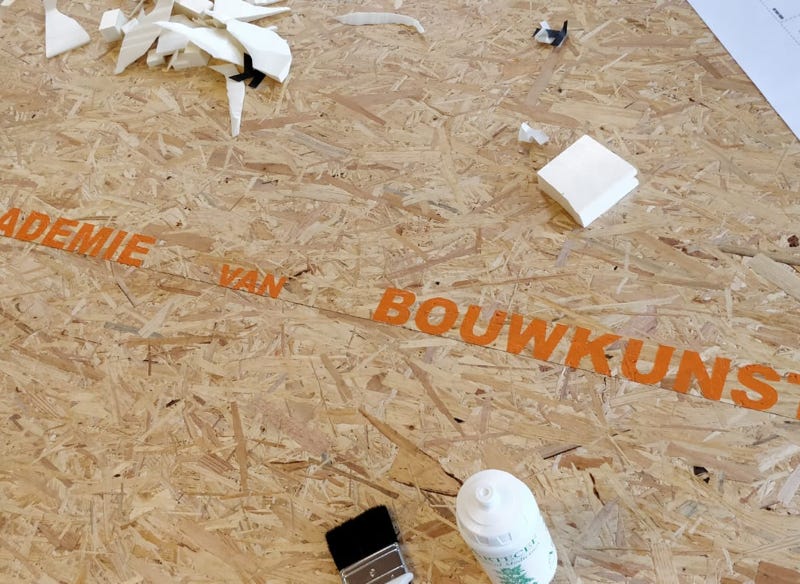 Als student van de Academie van Bouwkunst en mijn achtergrond als interieurontwerper kreeg ik de kans om een ontwerp te maken voor de interne renovatie van het Academiegebouw. Naast de meer structurele veranderingen, ontwierp ik ook het nieuwe meubilair. Samen met een team van medestudenten hebben we een weekend geregeld om een aantal van deze meubels zelf te bouwen. We hebben 5 kasten en een tafel gemaakt van gerecyclede materialen van het Tschumipaviljoen project.
